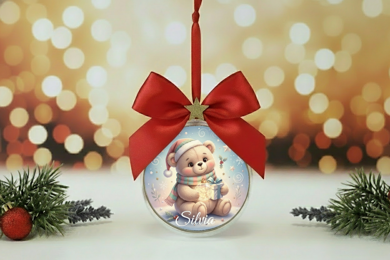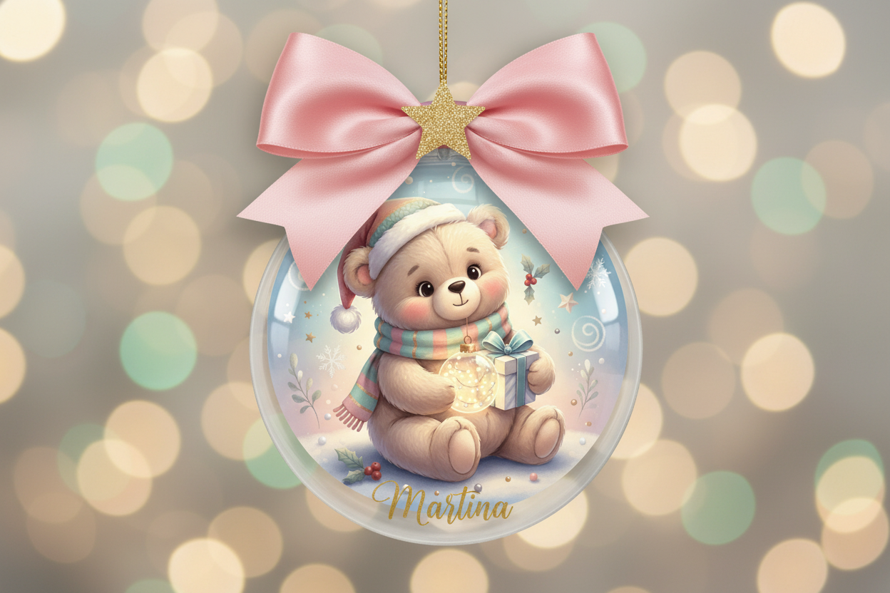 Pallina natalizia personalizzata in 3 varianti,con filtro rosa ,rosso o azzurro
