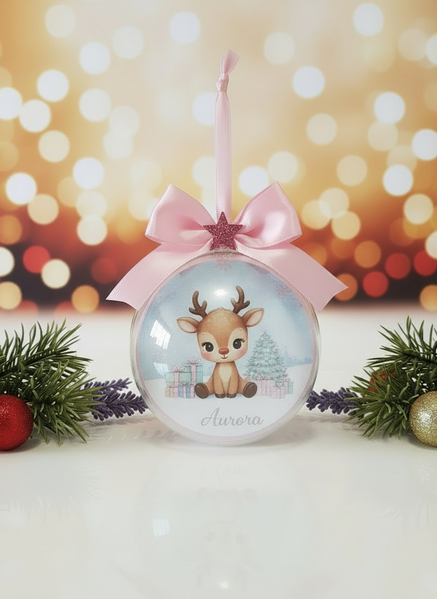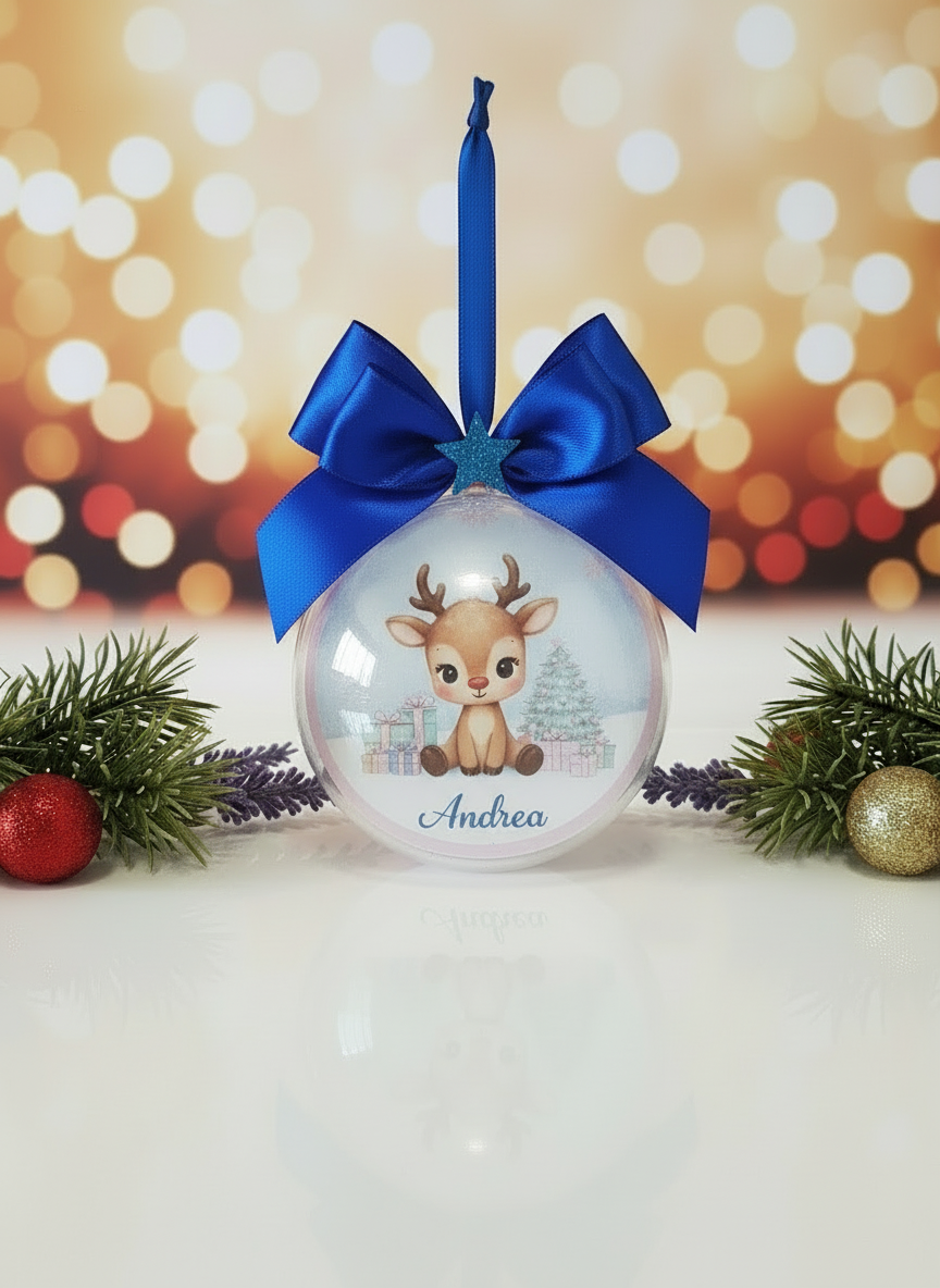 Pallina personalizzata con l' illustrazione di una tenerissima renna