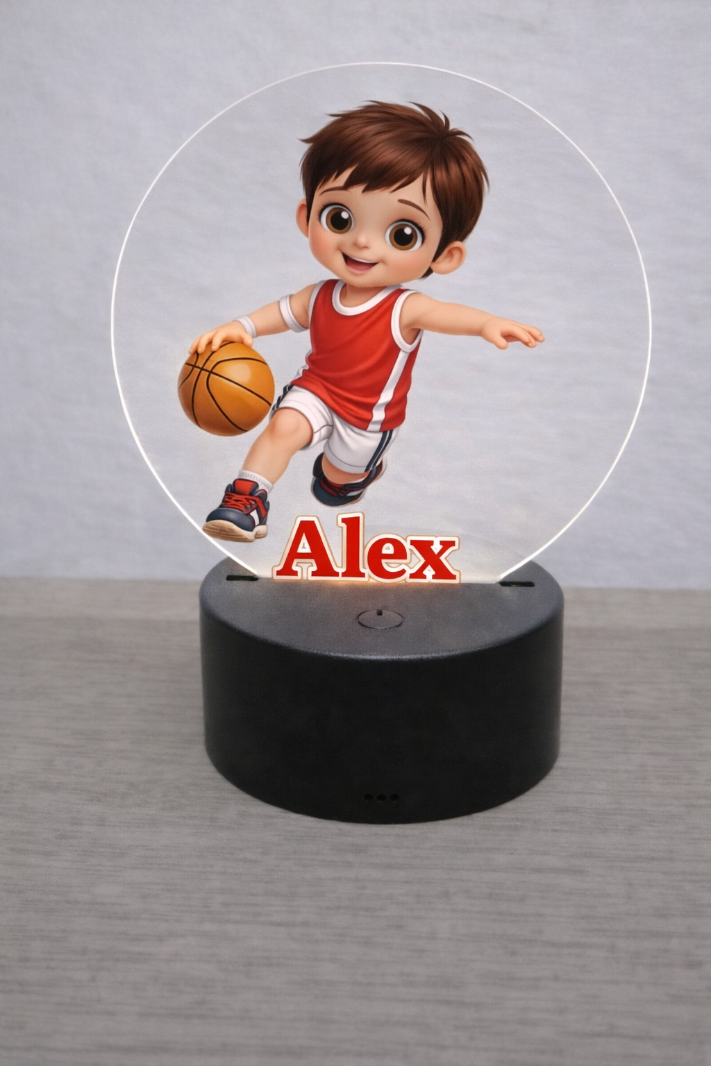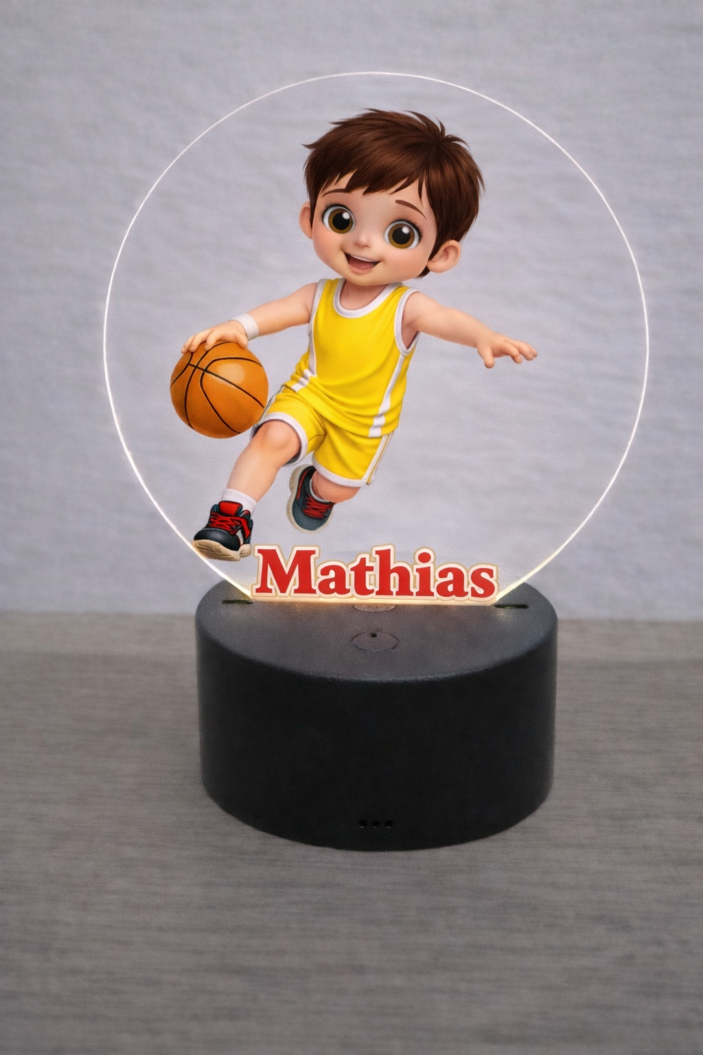 Erwecken Sie die Träume Ihres kleinen Basketball-Champions zum Leben mit dieser eleganten, personalisierten LED-Lampe, die sich perfekt eignet, um eine magische und zarte Atmosphäre im Schlafzimmer zu schaffen.